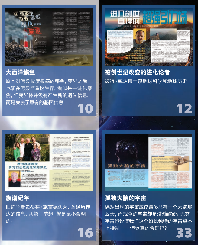 CMI的资源为我提供了极大的帮助,帮助我认识到进化论假说的缺陷,让我获得足够的知识装备来面对大学里的冲击。通过多年阅读《创造》杂志,我获得了大量(科学方面的)常识。我向希望读大学的家人们强烈推荐这本杂志。——大卫(David T)