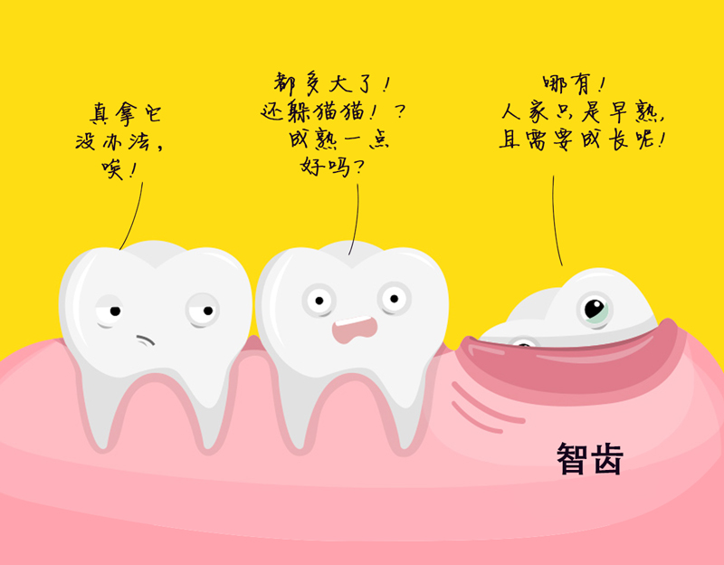 研究表明,现代社会中智齿所遇到的问题并不是由于环境造成的变异,而是饮食结构改变造成的问题,现代化社会中人们吃的大多是经过精细加工的食品,质地柔软,缺少磨料,牙齿得不到应有的锻炼,也不易保证健康的咬合关系。