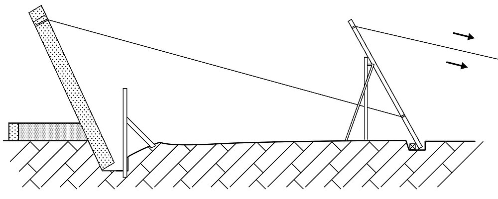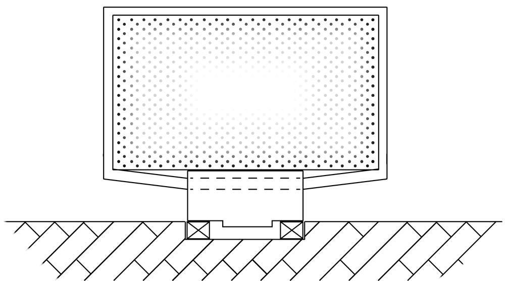 用于搬运巨石的橇车和轨道的截面图(上面是绑紧的石块,中间是橇车,下方是轨道)