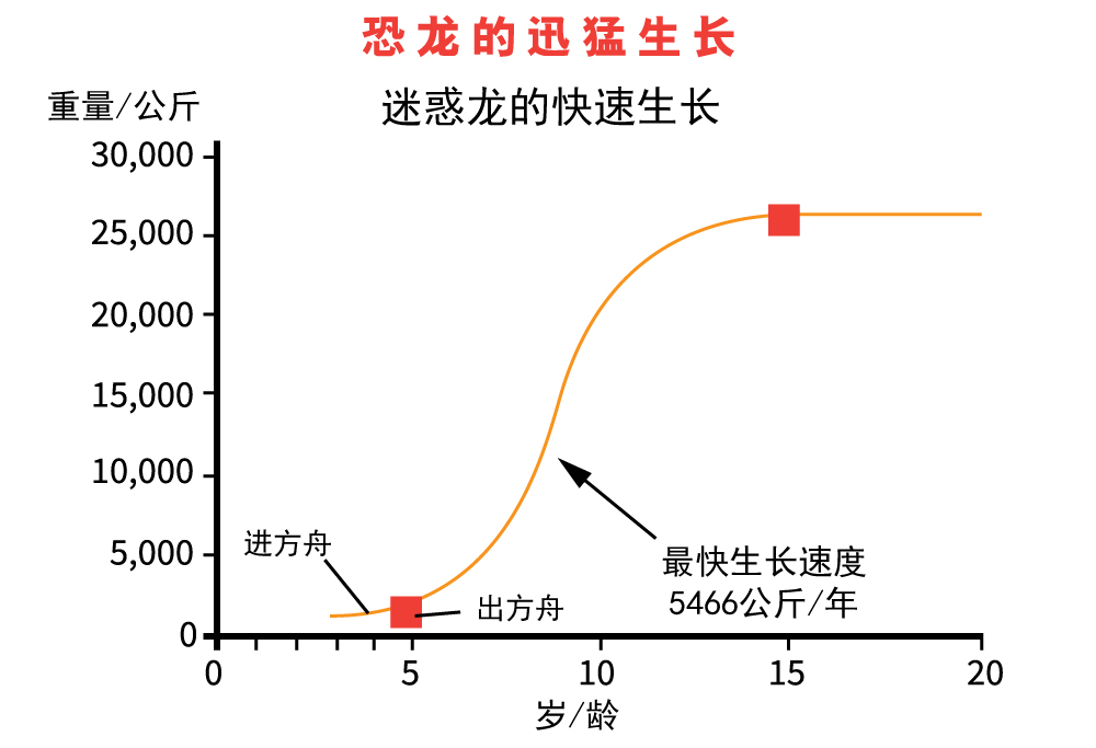 2. 上帝没必要非得把最大的成年恐龙带到挪亚面前(创世记6:20)。从蛋(即使是蛋中之王——中华贝贝龙的巨型长形蛋)孵化出来的恐龙,也只有61厘米(2英尺)长,而且它本来就是长形的。1 很多恐龙的骨头上都有生长年轮,科学家认为恐龙有快速生长期。所以,恐龙可能都是在快速生长期的前一年进入方舟的。例如,上方舟的迷惑龙,可能是1吨重的四岁幼龙,而不是25吨的成年龙。一年后,它出了方舟,开始快速成长。2