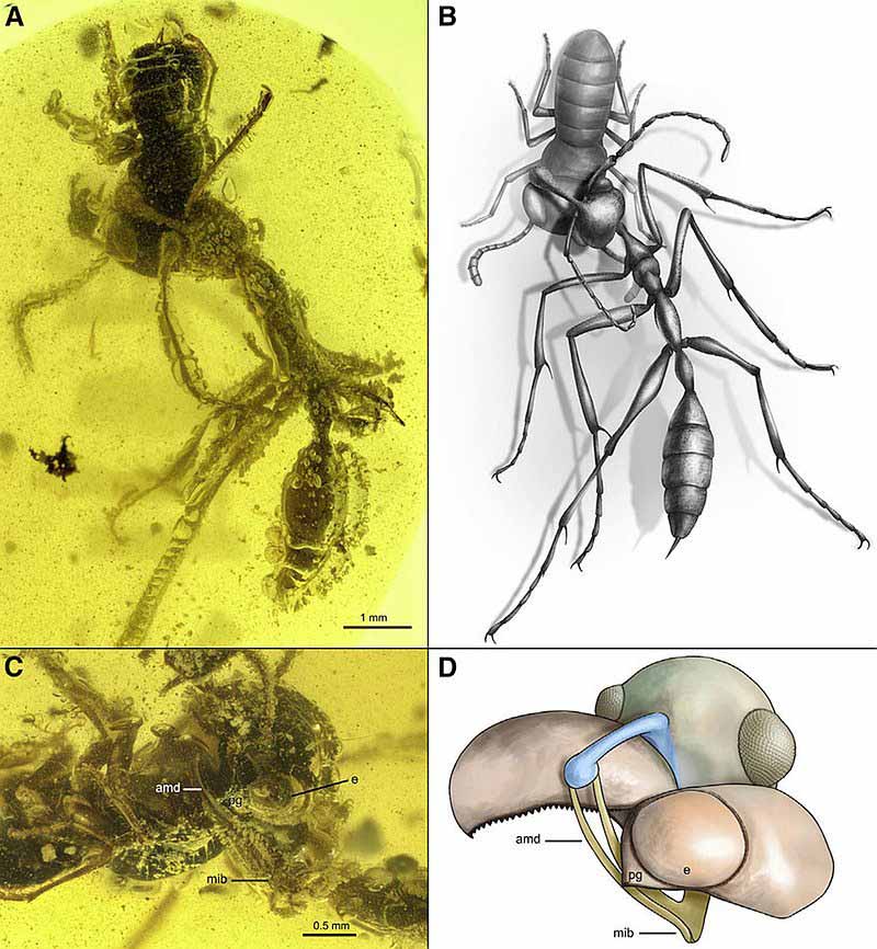 - Casella, C., Prehistoric ‘Hell Ant’ stuck in amber has been mauling its prey for 99 million years, sciencealert.com, 6 August 2020.