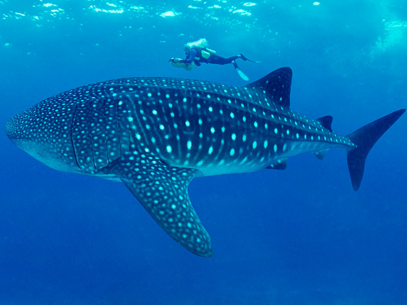 与鲸鱼大小的鲸鲨一起游泳的想法可能听起来很吓人,但世界上有几个地方已经将“与鲸鲨结伴畅游”作为一项常规的旅游项目。鲸鲨这种大鱼其实性情温和,不会伤害人类。我和太太梅乔在菲律宾宿务省南部的奥斯洛布和鲸鲨同游。那里有很多鲸鲨聚集,因为当地的渔民会定期给它们喂食。我们还去了菲律宾的平图延(梅乔的故乡),再次与鲸鲨一起畅游。近距离观察这些壮丽的生物真的是一次非常棒的经历。