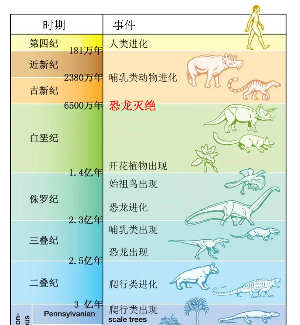 进化论常常灌输一个“恐龙时代”的故事,称“在2.5亿年前恐龙开始称霸地球,直到6500万年前恐龙突然全部灭绝”。