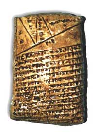 | 图注2: 像这样的泥板对于保存长期的文字记录来说是较为理想的材料。与打火石的笨拙截然不同,泥板可以单手持握。有关族长时代的记录材料可能被带上了挪亚方舟,后来摩西在编纂《创世记》时便使用了这些材料。 |